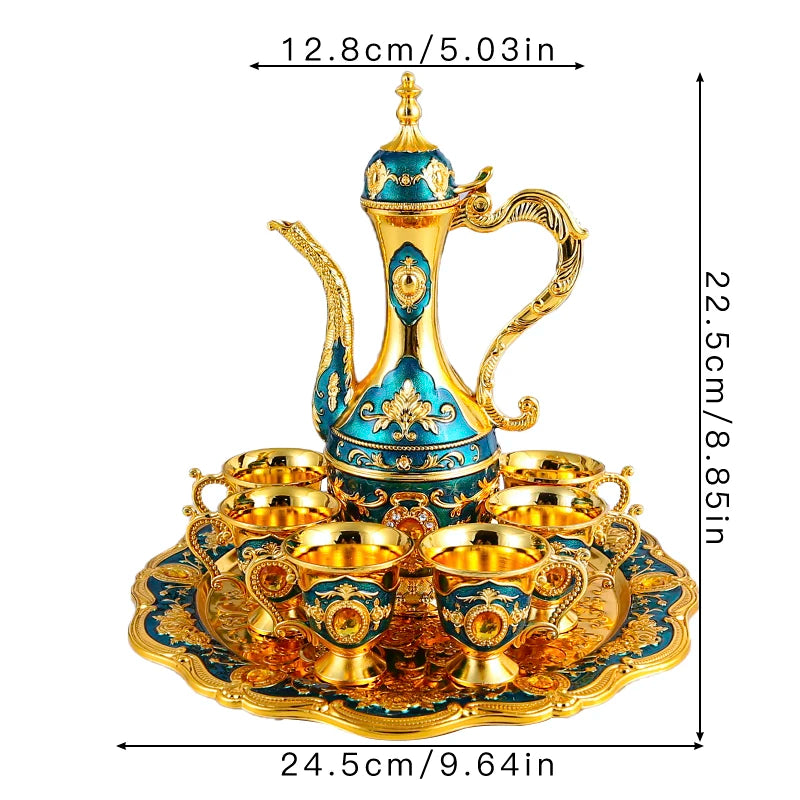 1 metal wine set, 1 tray and 6 shot glasses and 1 wine pot combination.