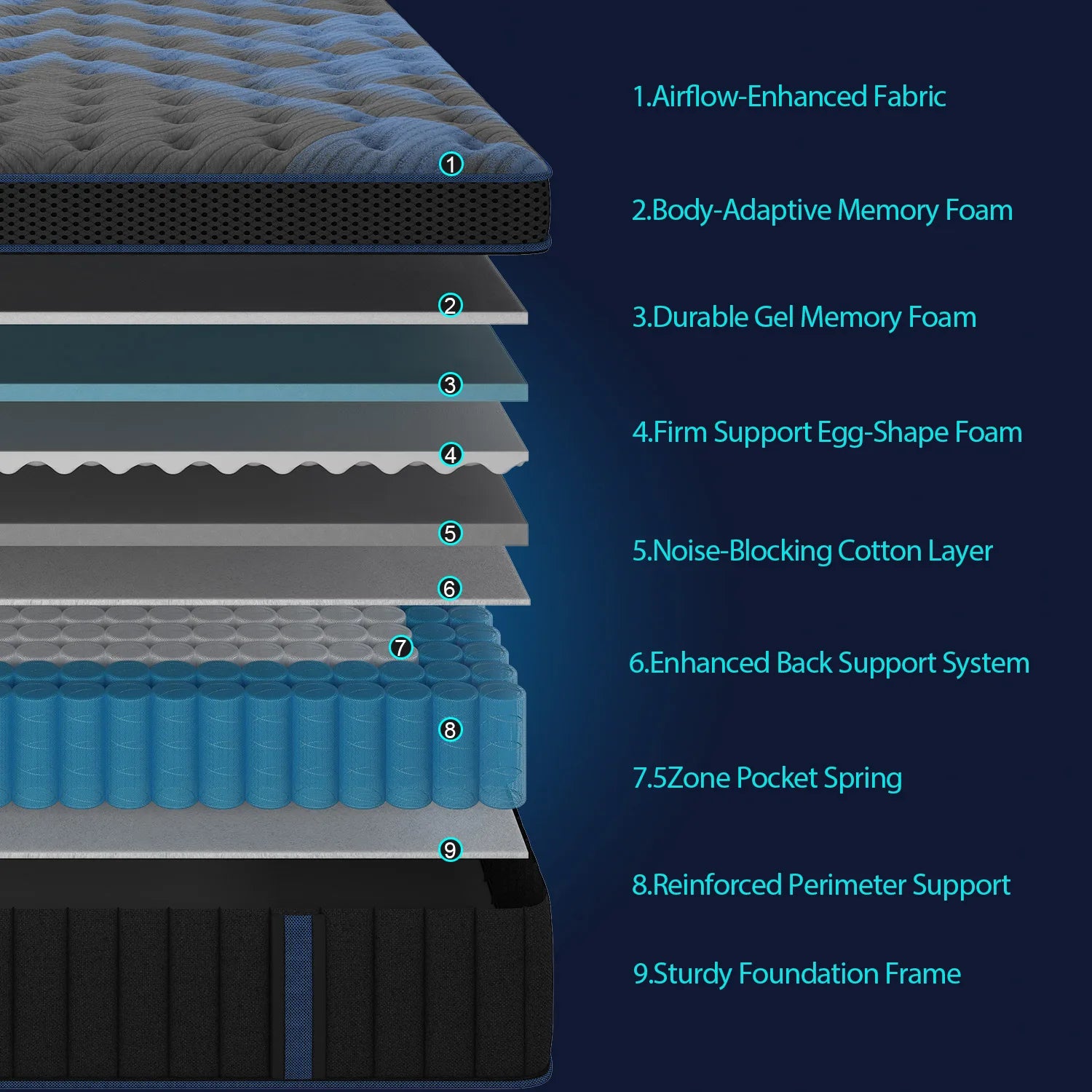 12"Gel Memory Foam Hybrid Pocket Spring Mattress Twin, Full, Queen, King Bed Mattress In A Box.