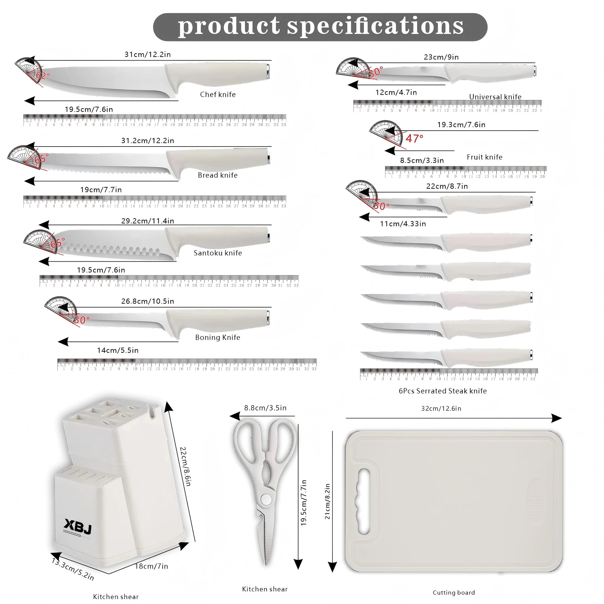 15-piece kitchen stainless steel knife set with knife holder, space-saving storage, full handling of ingredients.