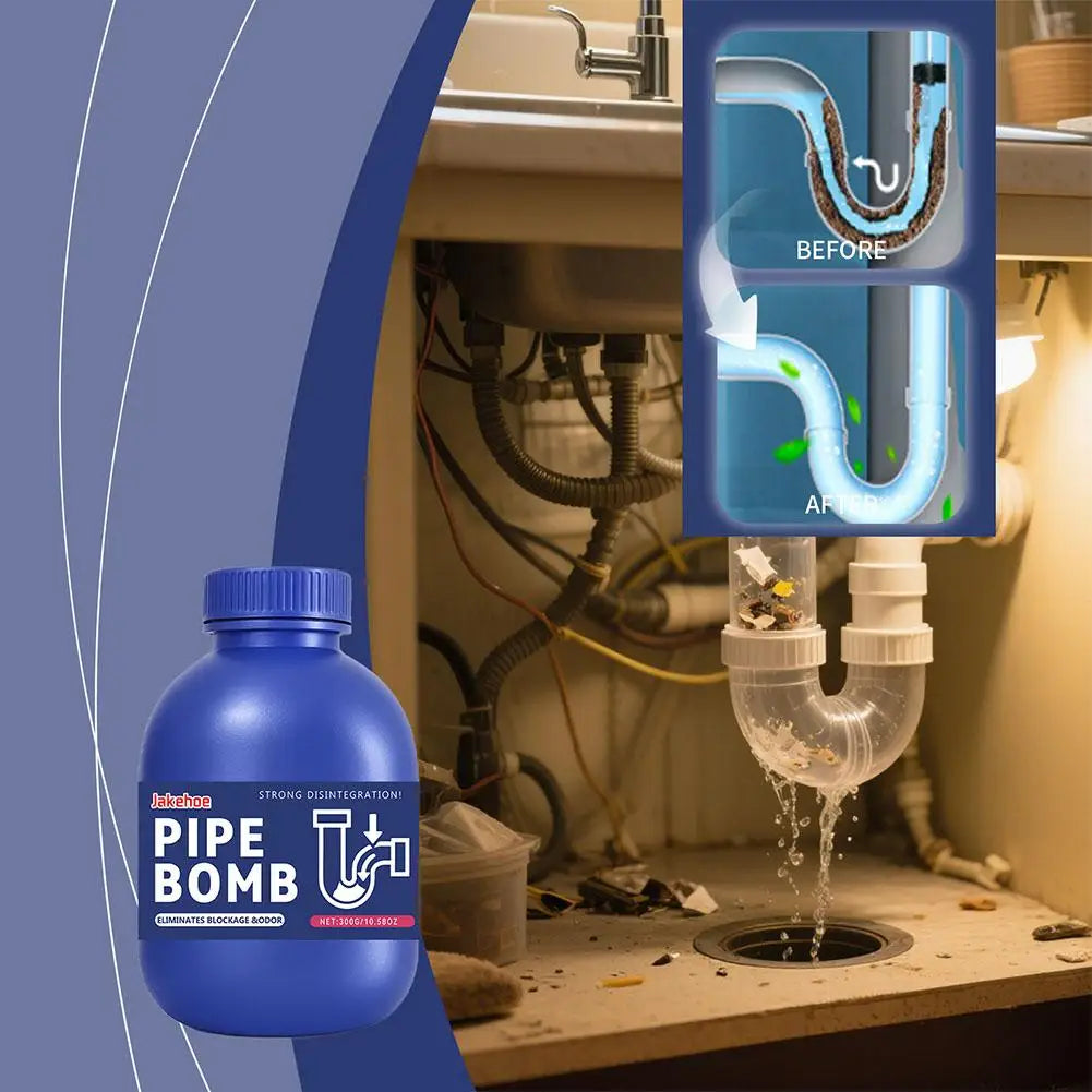 Powerful Blockage Elimination: Experience rapid and effective clearing with our Pipe Bomb. Its strong disintegration formula quickly dissolves stubborn hair, grease, soap scum, and food residues, restoring smooth drainage and preventing overflows in your sinks and drains throughout your home.