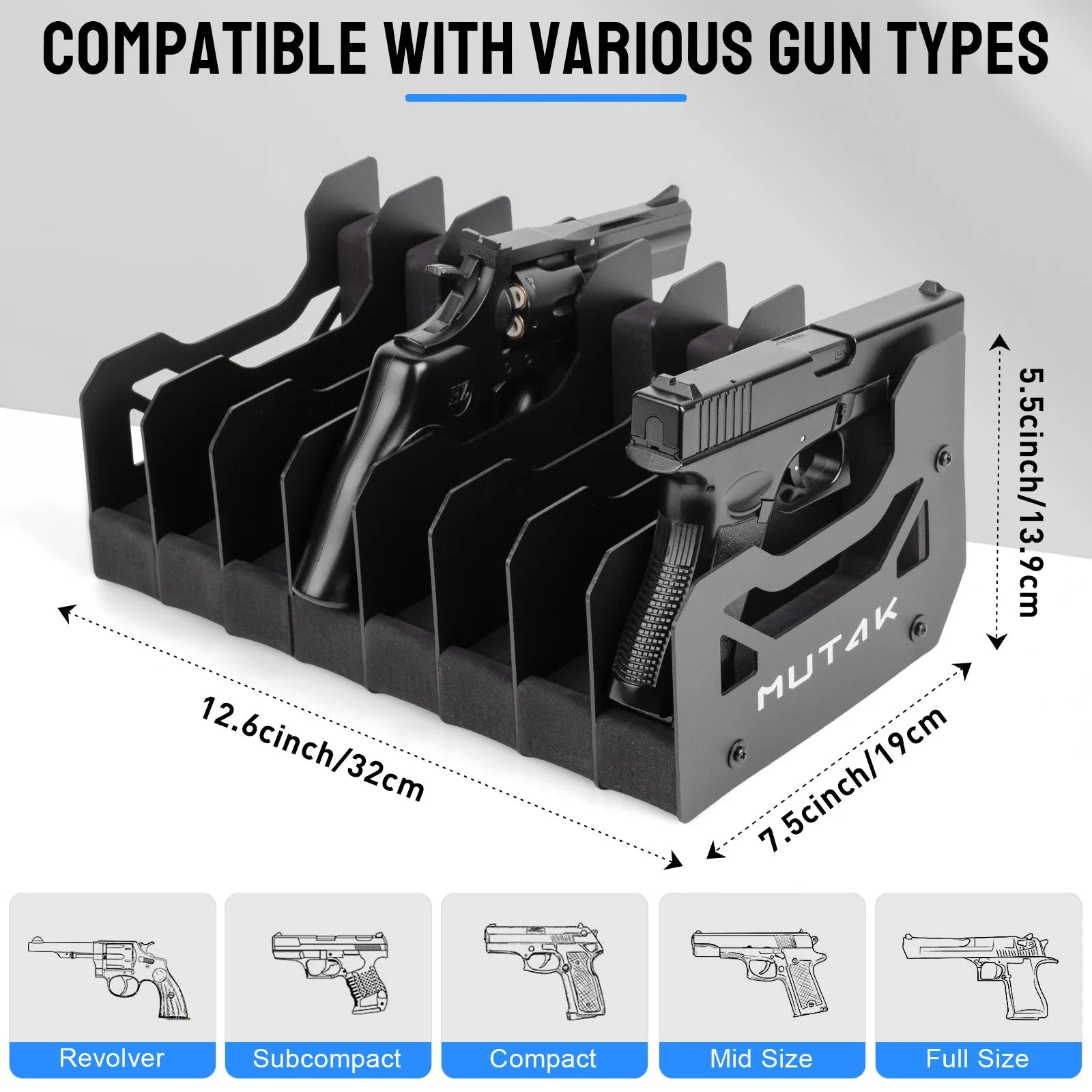4/6/8 Slot Foam Pistol Rack for Gun Safe, Handgun Rack with Anti-slip Magnetic Strip.