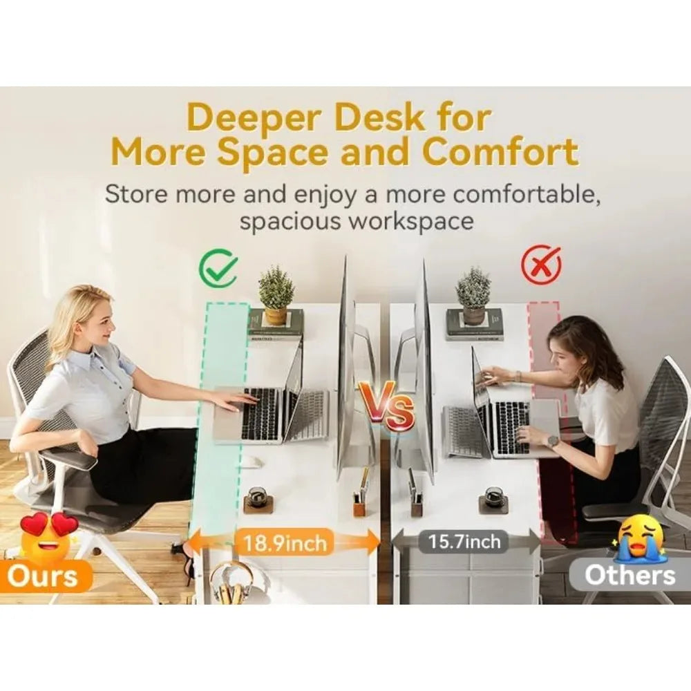 48-Inch White Computer Desk with 8 Fabric Drawers, Modern Office Desk for Home Office.
