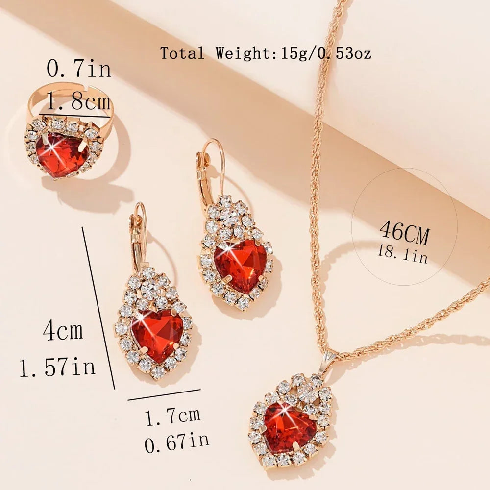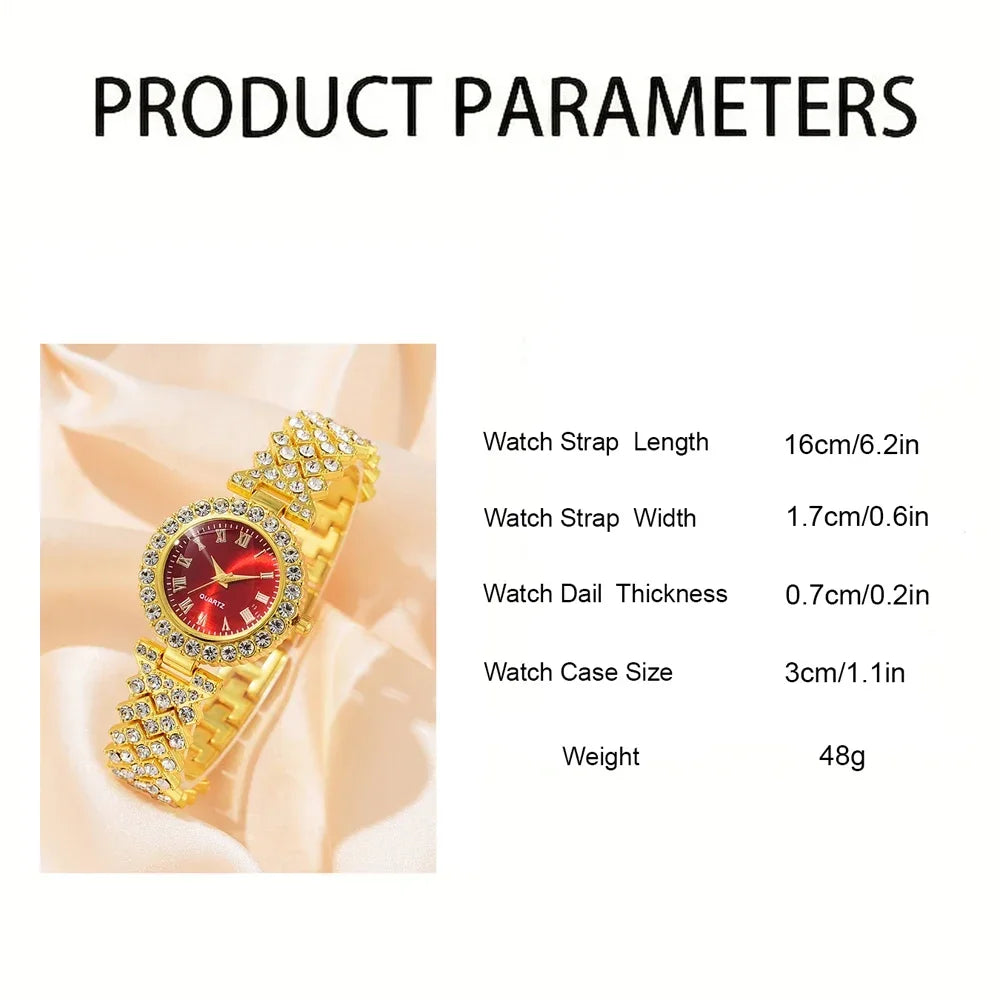 5Pcs Golden Luxury Watch Women Ring Necklace Earring Rhinestone Jewelry Set.