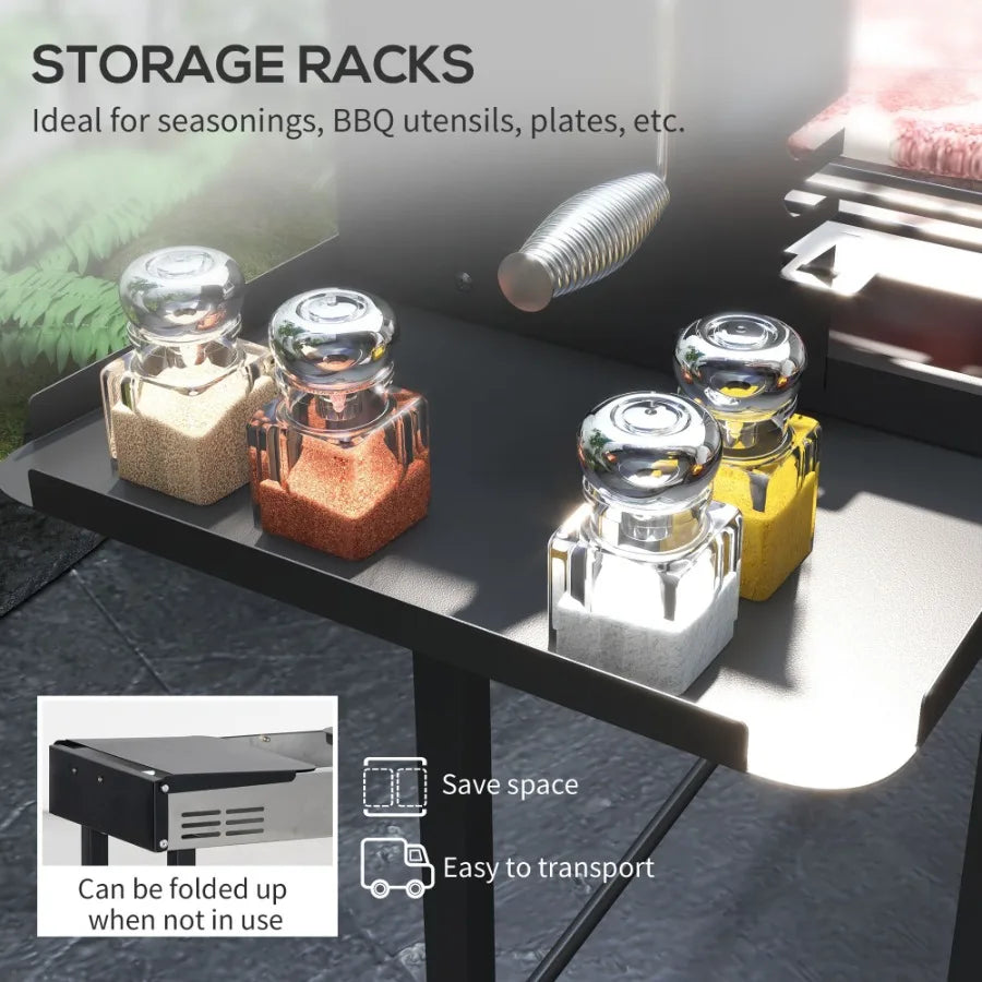 BBQ Rotisserie Charcoal Grill for Chicken Turkey 3Level Grate Storage Shelves Stainless Steel.