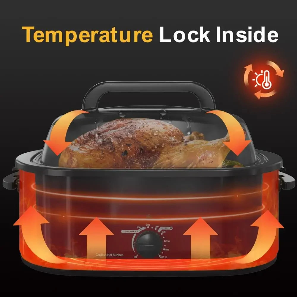 Electric Roaster Oven,1450W Multi-Function Self-Basting Buffet Cooker Removable Rack Ideal Parties.