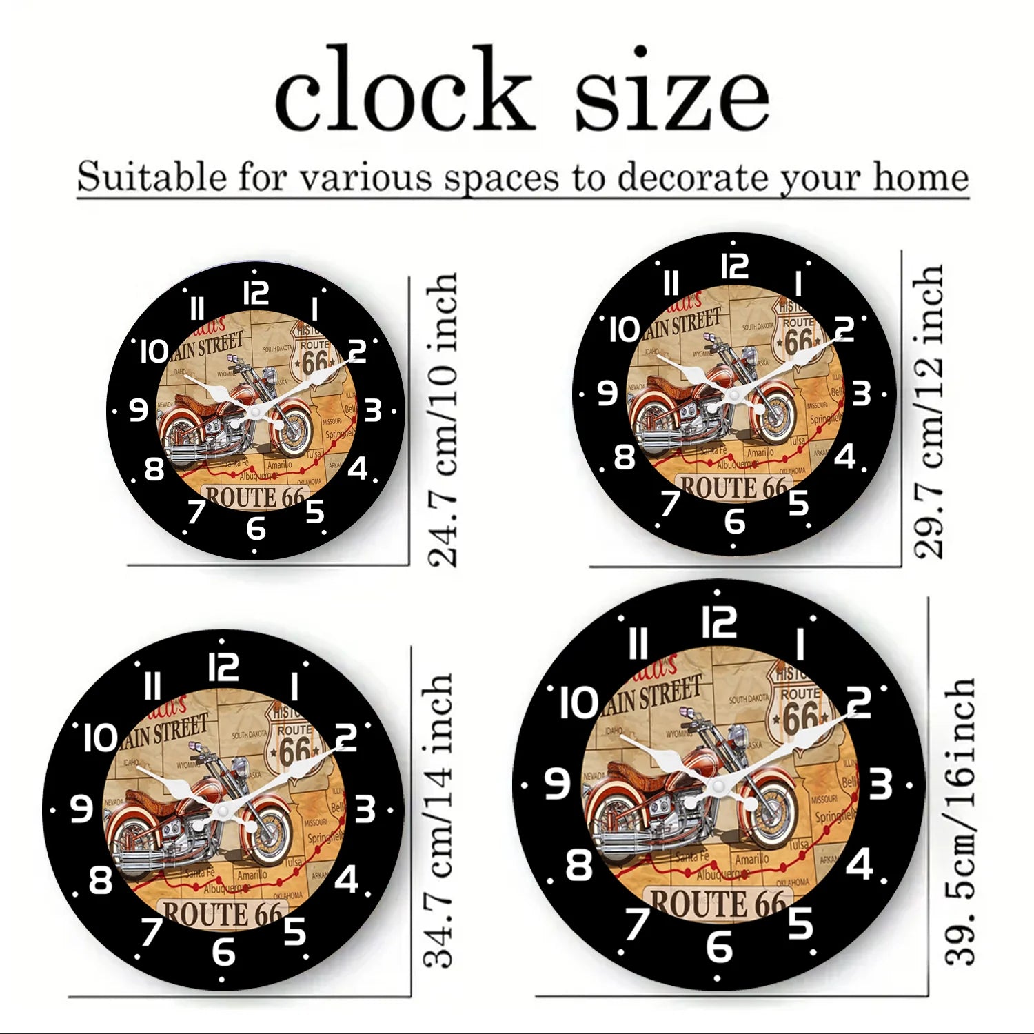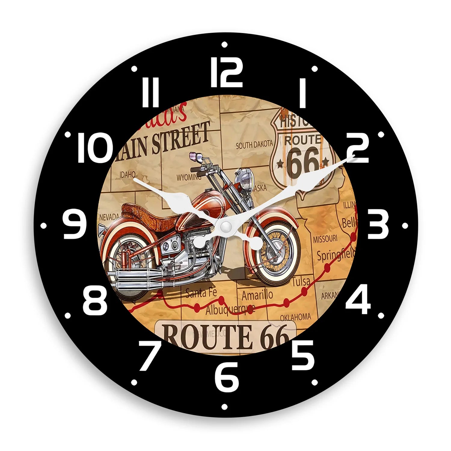 Fashionable No. 66 Road Motorcycle Wooden Wall Clock Living Room, Bedroom ,Kitchen, Home Decoration, (Without Batteries)