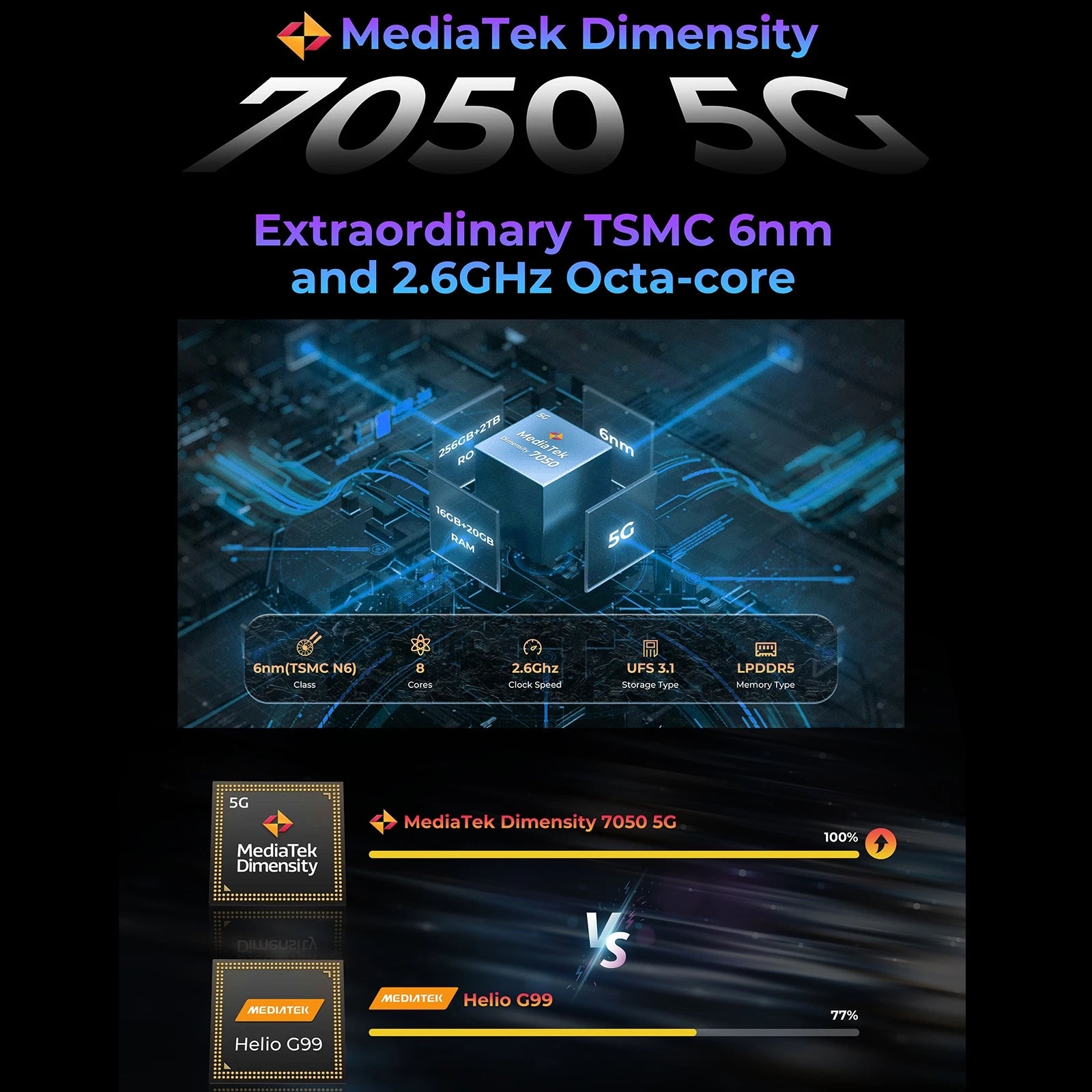 HOTWAV Hyper 7 Pro, Rugged Phone 36GB 256GB MediaTek, Dimensity 7050 5G 200MP Android 14, 6.6 inches FHD+ 10800mAh 33W Cellphone