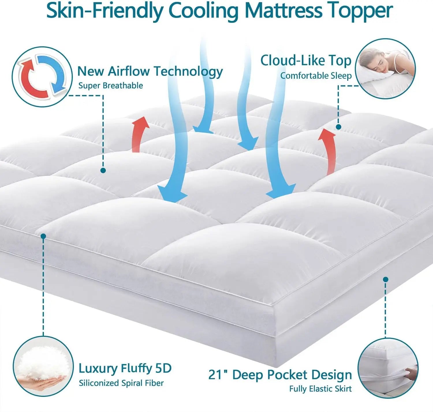 King Mattress Topper, Extra Thick Pillow Top Mattress Pad for Back Pain Relief, Cooling Bed Topper Mattress Cover with 8-21 Inch Deep Pocket