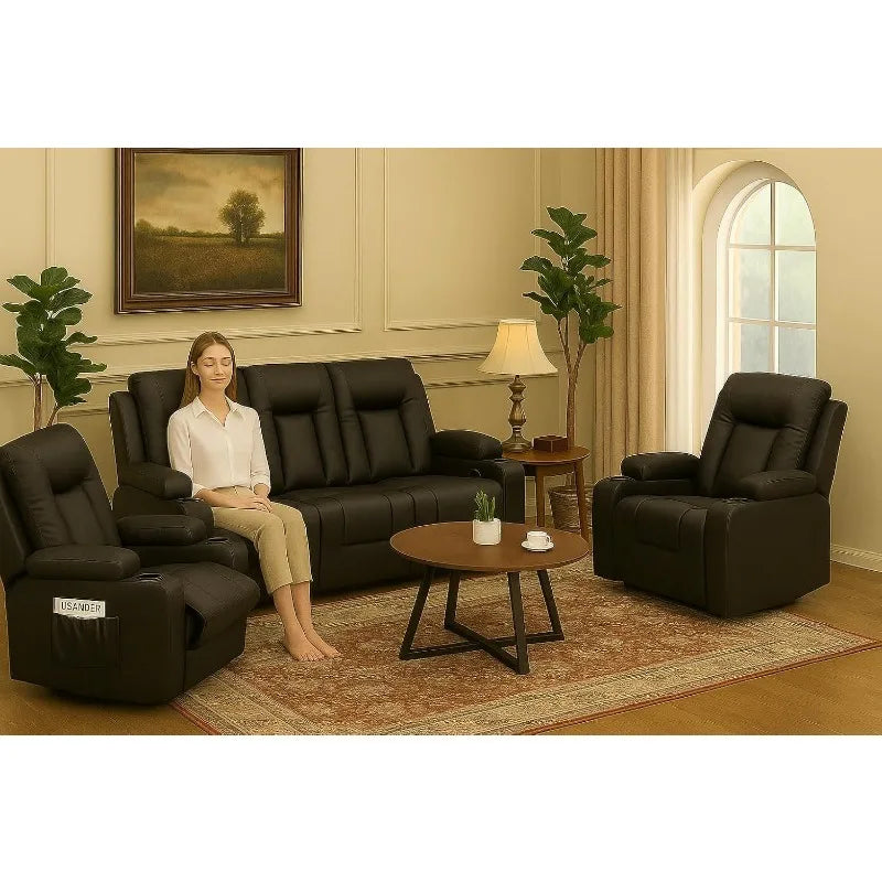 Leather Recliner Sofa Set with Manual Recliners Couch, Loveseat and Armchair
