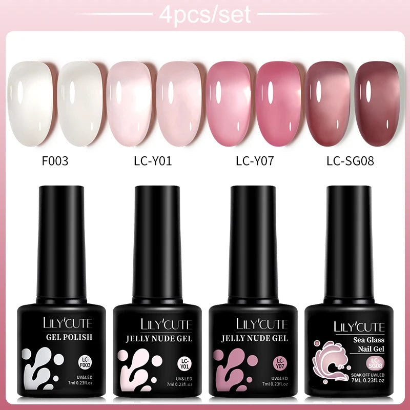 LILYCUTE 4/5Pcs/Set 7ML Nude Pink Gel Nail Polish, and Translucent Jelly Nail Art Gel, Semi Permanent Design Manicure Set.