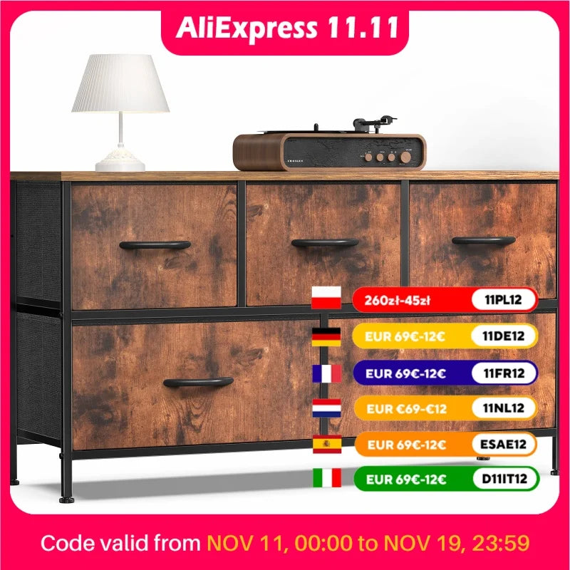 Living Room Display Cabinet With 5 Fabric Drawers. Steel Frame Assembly for Clothes.