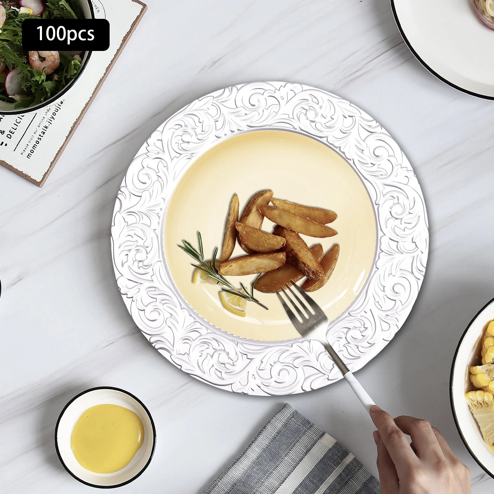 Plates 100-Piece Set Round Reusable Serving Plates, Gold, Black, Silver, Green