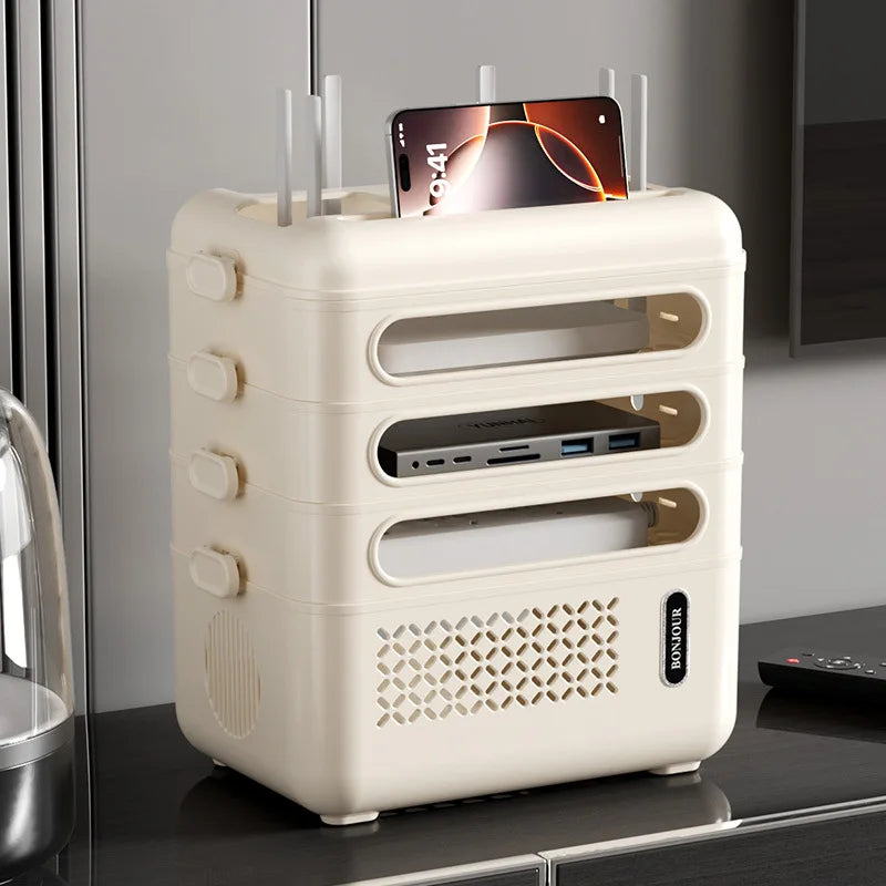 Router Organizer Box Multi-Functional Storage Shelf, Cable Management Large Capacity for Power Strips Charging Cords