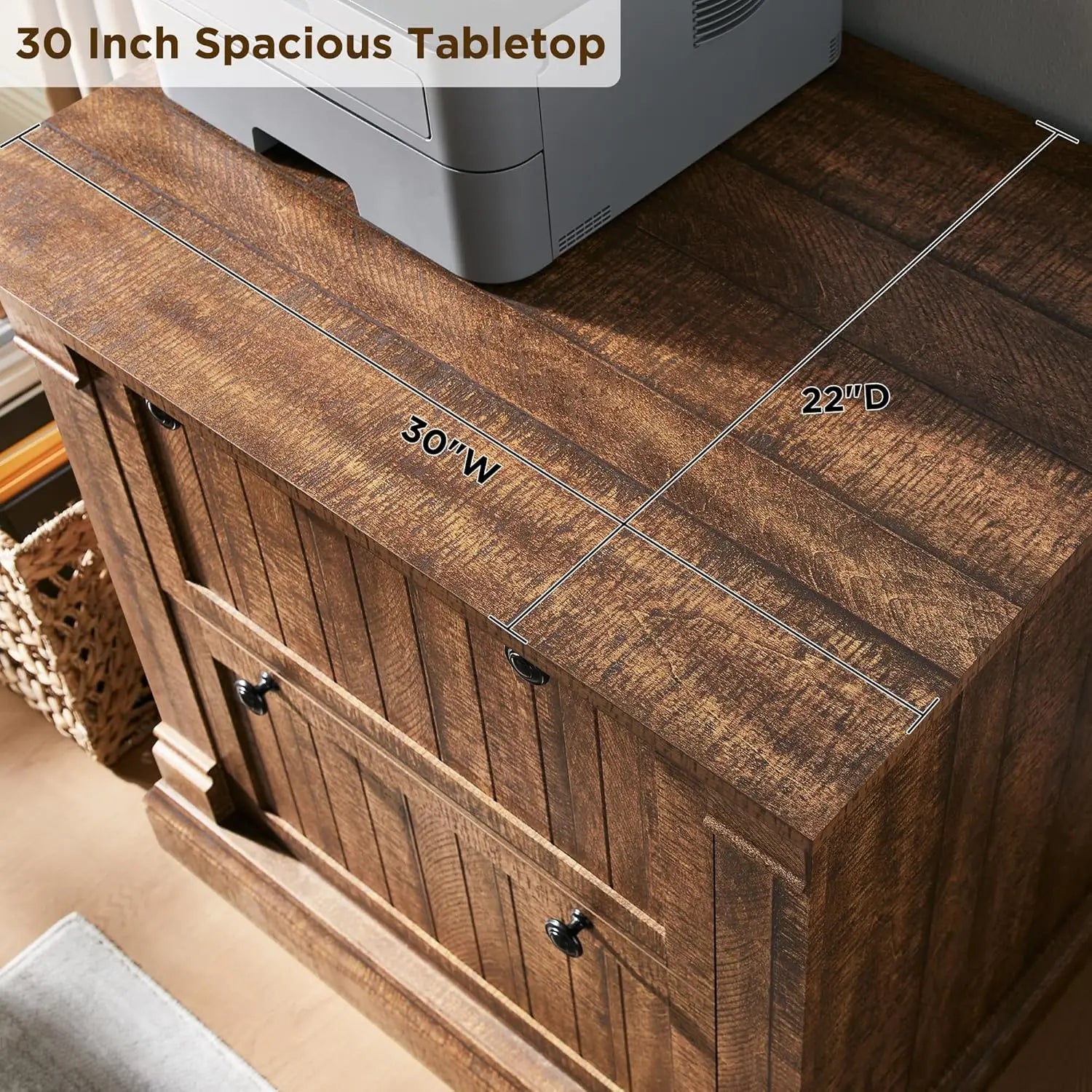 Rustic Brown 2-Drawer Lateral File Cabinet for Home Office